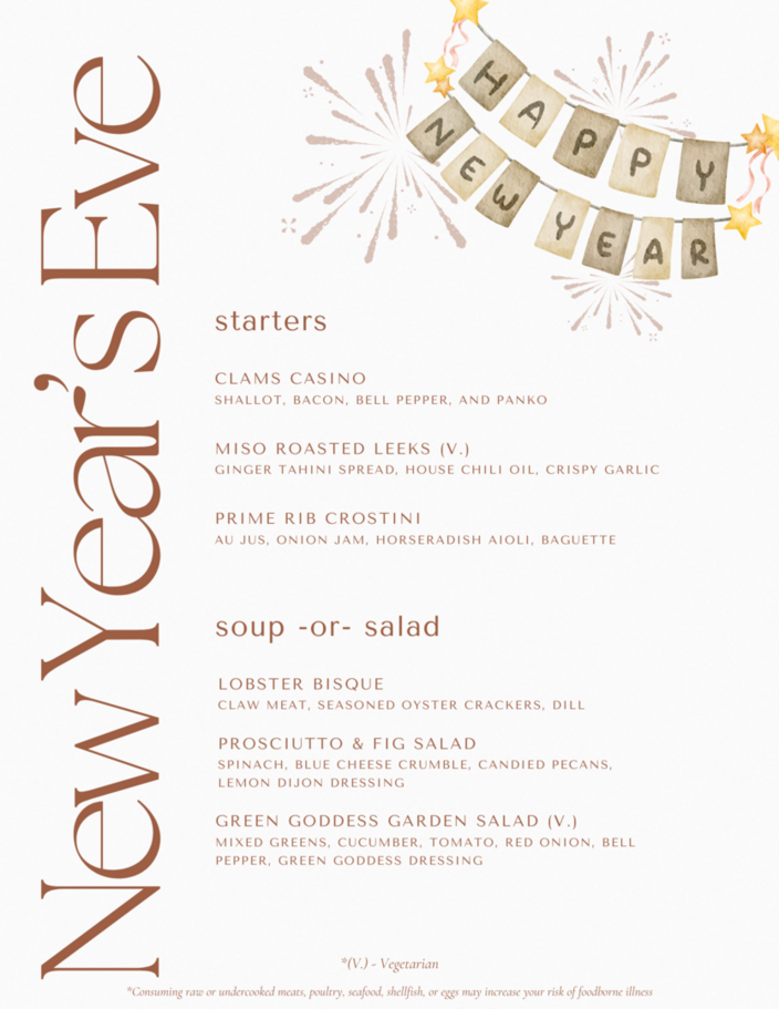 Please join us on December 31, 2024 for our annual New Year's Eve Dinner!